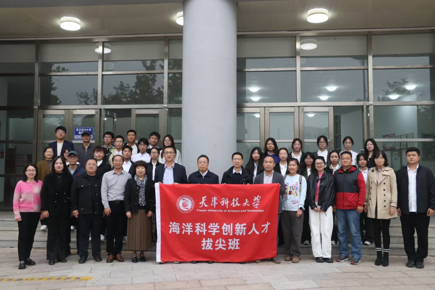 路福平为天津科技大学海洋科学“拔尖班”授旗,并勉励同学们要励志勤学,以创新精神和严谨态度迎接挑战,为推动海洋科学的创新与发展贡献力量。路福平对拔尖班建设提出三点要求,一是要创新培养模式。推进“拔尖班”培养体制机制创新,让学科之间的交叉融合成为常态。要遵循基础学科拔尖创新人才成长规律,建立拔尖人才脱颖而出的新机制,积极探索实施拔尖学生培养试验的“一制三化”(导师制、小班化、个性化、国际化)。二是要建强师资队伍。要发挥教育部“三全育人”综合改革试点学院的优势,持续深入实施导师制,设立学业导师、科研导师和生活导师,在课程学习、科学研究、生涯规划等方面给予学生全方位指导。三是要做好支持保障。加强组织保障、政策保障、经费保障,成立由党委书记和院长任组长的领导小组,由知名学者和教学名师组成的专家委员会,改革完善教师激励办法、学生奖励办法、教学管理办法等。学校将会统筹利用教育教学改革专项等各类资源支持拔尖计划,推动学生国际交流、科研训练、创新实践、学术交流、社会实践活动和国内外高水平教师合作交流等工作的开展。