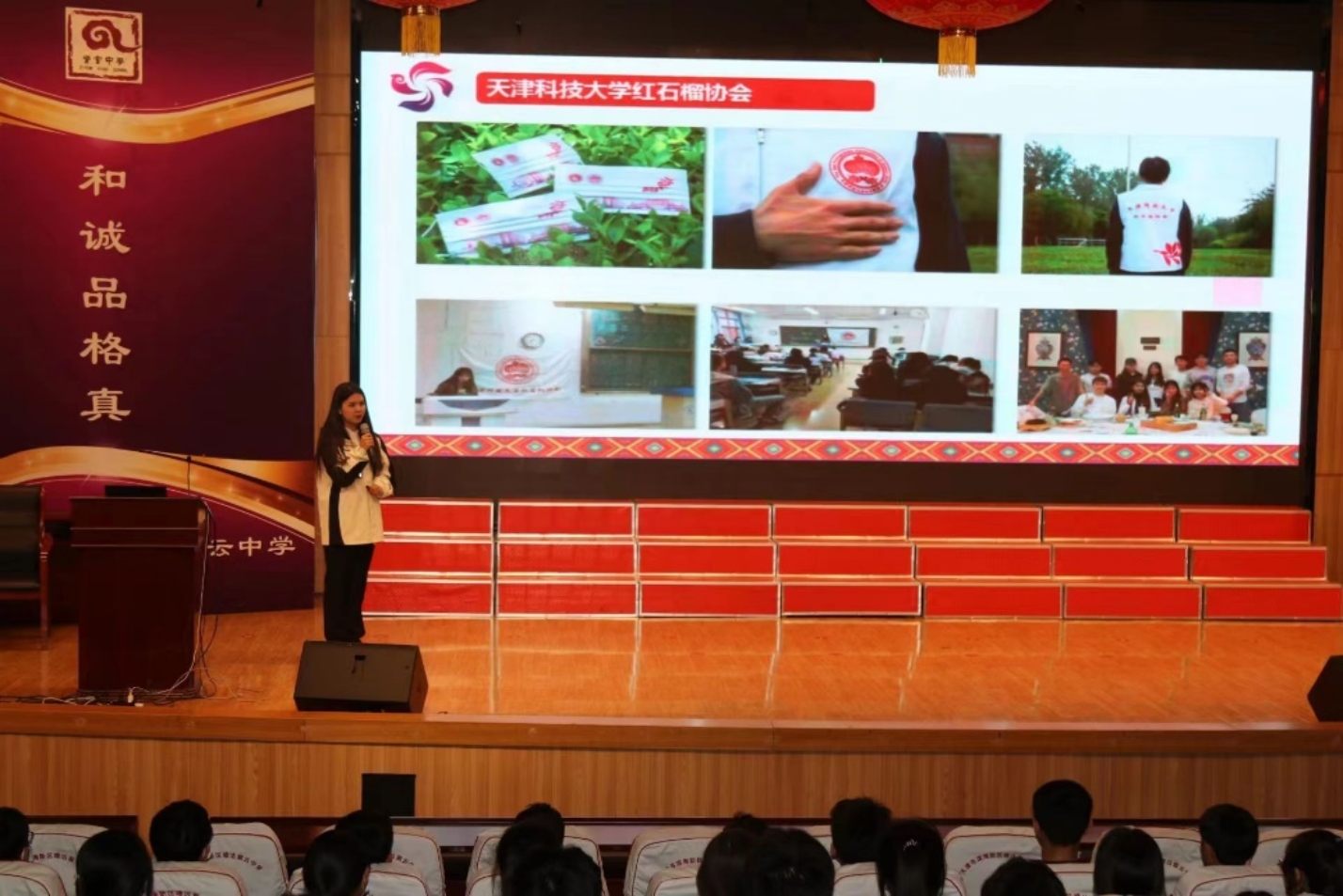 孩子们脸上都洋溢着求知的渴望和幸福的笑脸,现场气氛活跃,同学们反响热烈。互动环节中,迪丽胡玛•热木图力说到,“我和我求学的城市有着千丝万缕的羁绊,这里见证了我的成长历程,一点一滴都与海河融为了一体。我渴望用自己的行动让更多的石榴花开在这片沃土上。”