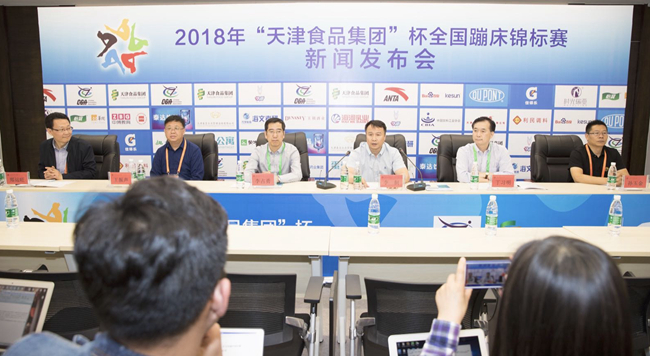 5月6日下午,2018年“天津食品集团”杯全国蹦床锦标赛新闻发布会在我校滨海主校区体育馆新闻发布厅举行。国家体育总局体操运动管理中心蹦床部部长李舸,2018年全国蹦床锦标赛总裁判长丁习明,天津科技大学副校长李占勇等出席发布会。近20家中央和天津媒体参加发布会。天津科技大学宣传部负责同志主持发布会。