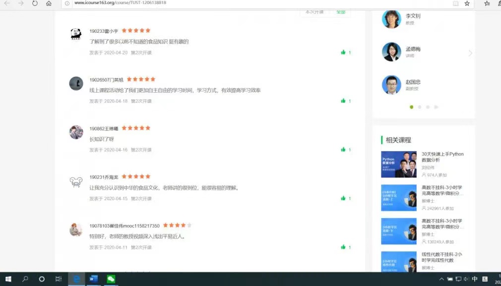 究其源头,《食品与文化》课程始建于2002年,最初命名为《中外食品文化鉴赏》,是面向食品科学与工程专业本科生开设的专业拓展类选修课。2009年更名为《食品与文化》作为个性化人文素养类公共选修课面向全校开设。2012年更名为《食品技术与文化》升级建设成国家精品视频公开课,形成了《食品与文化》课程的核心。2017年建设为校级精品在线开放课程,2018年作为校内在线课程上线,2019年,《食品与文化》在线开放课程在中国大学MOOC上线运行,一年多运行三期,选课人数4128人。