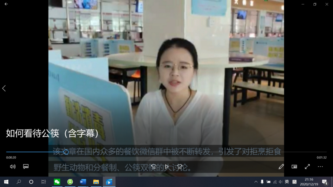 (2)拍摄融合课程思政的微视频——“如何看待公筷”