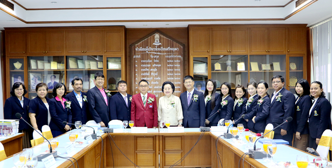 维拉校长在发言中表示,以习近平同志为核心的党中央带领中国人民取得了举世瞩目的成就,目前泰国人民对学习汉语和中国文化的需求越来越大,学校在汉语教学方面还有很多工作要做,喜培沓中学将借和易三仓大学孔子学院共建教学点的契机在全校范围内开设汉语课程,为培养适应时代潮流的汉语专业人才做出贡献。卢瑷珊在致辞中介绍了孔子学院的发展概况。赵佩钦就易三仓大学孔子学院概况、宗旨、业务范围、同教学点的具体合作事宜等进行了介绍。