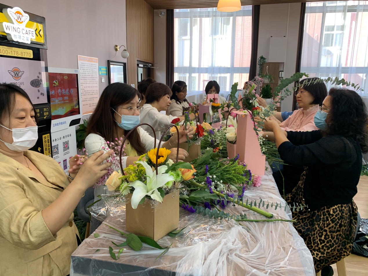 活动现场花艺师从花材分类、颜色搭配、修剪技巧、结构造型、视觉审美等方面,为大家详细讲解了花艺知识,并指导示范了插花步骤。教职工在花艺师的指导下,发挥自己对美的想象力和创造力,将一簇簇花草变成了一件件独具匠心、绚丽夺目的插花艺术品。老师们手捧着自己的得意之作,纷纷在教工之家拍照留影,脸上绽放出花儿一样的笑容。活动不仅向教职工传递了节日祝福,而且使大家在繁忙的工作之余,陶冶情操,放松身心。