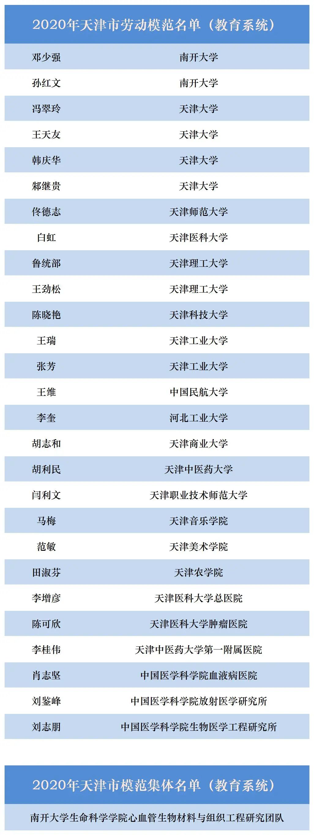其中,我市教育系统邓少强等27名同志荣获天津市劳动模范称号,南开大学生命科学学院心血管生物材料与组织工程研究团队荣获天津市模范集体称号。
