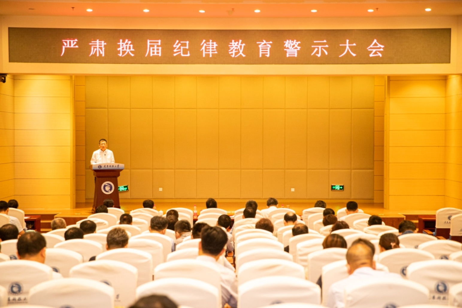 会议共有两项议程,一是集中观看《警钟长鸣-严肃换届纪律教育警示录》,二是校党委书记韩金玉结合观看学习情况就严肃换届纪律提出要求。