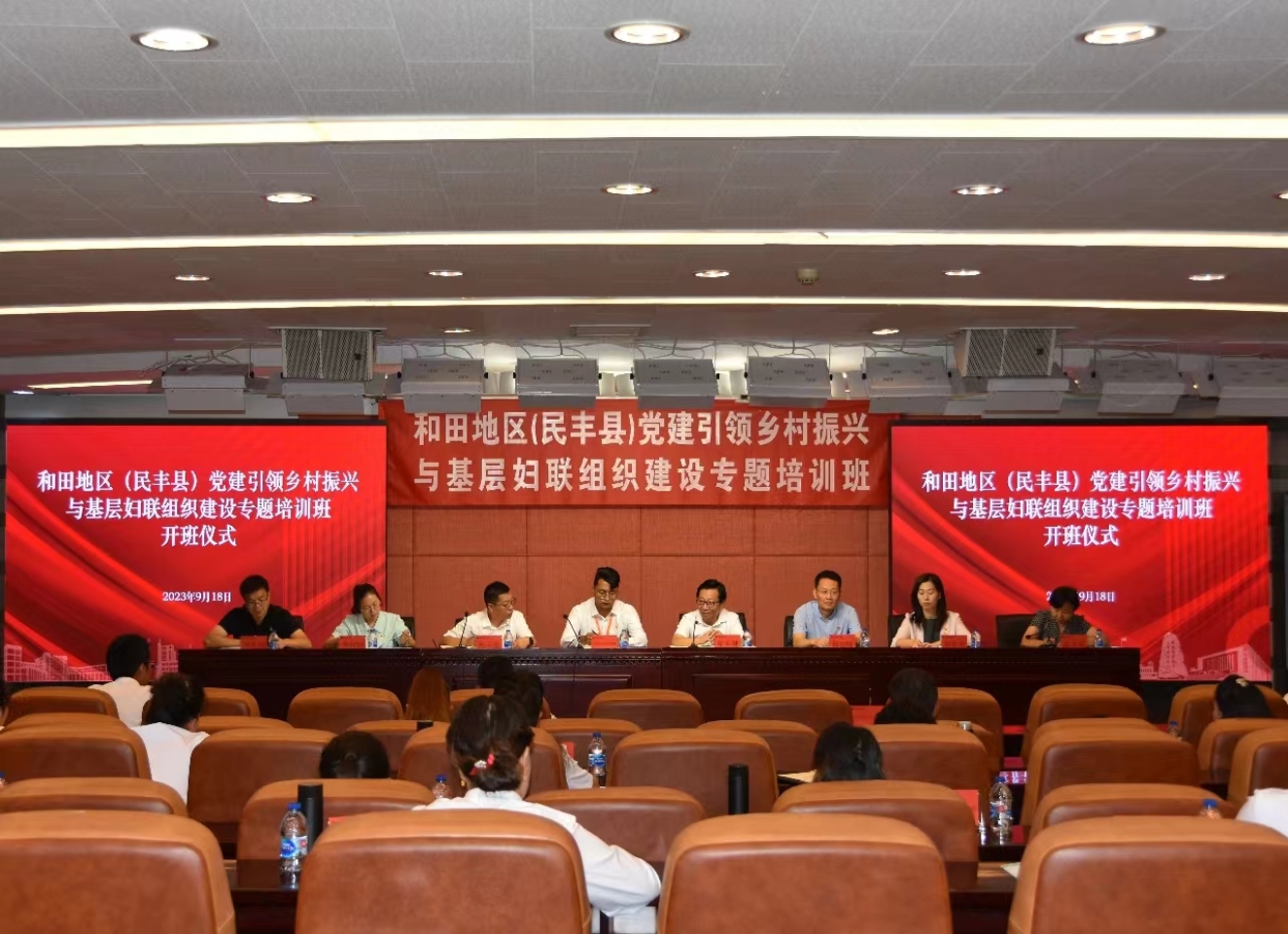 9月18日上午,天津科技大学举办和田地区(民丰县)党建引领乡村振兴与基层妇联组织建设专题培训班,校党委副书记安玉健出席开班仪式并致辞,来自新疆和田地区民丰县8个乡镇29个村(社区)的党支部书记、村委会主任及妇联主席参加培训。本次培训由继续教育学院承办,校党委办公室、统战部、组织部、宣传部相关负责同志出席。