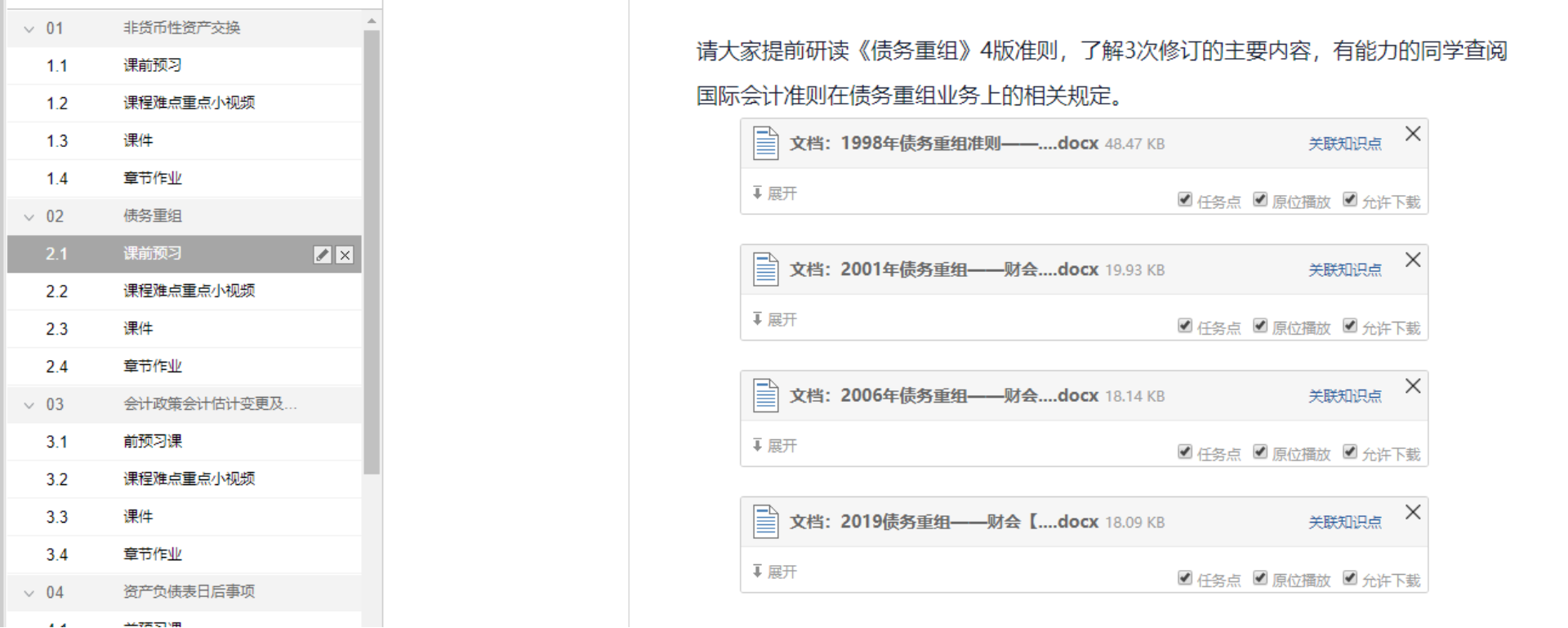 每次课前根据课程要求,设计课前预习环节,为线下课堂讲解做准备。每章结束后布置课后作业,客观题系统可以自行评分,并对作业成本进行详细分析。如在讲解《债务重组》这一章相关概念前,推送上市公司的年报,请同学们关注债务重组的会计处理。