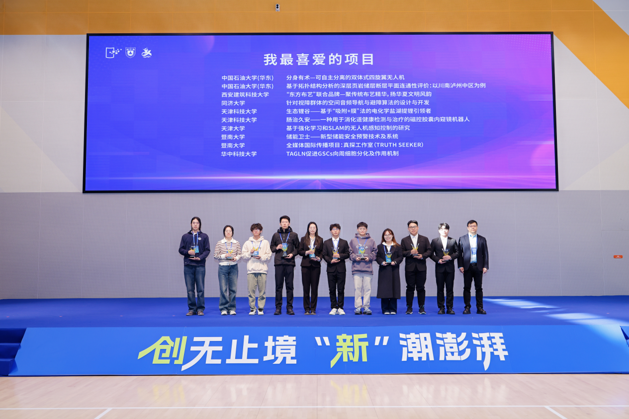 《生态锂谷——基于“吸附+膜”法的电化学盐湖提锂引领者》荣获“我最喜爱的项目”奖;《肠治久安——种用于消化道健康检测与治疗的磁控胶囊内窥镜机器人》一举斩获“我最喜爱的项目”和“最佳创意项目”两项殊荣,天津科技大学荣获“优秀组织奖”。这也是我校自2022年以来,四年蝉联“优秀组织奖”,连续四年实现获奖总数位居天津市属高校首位。