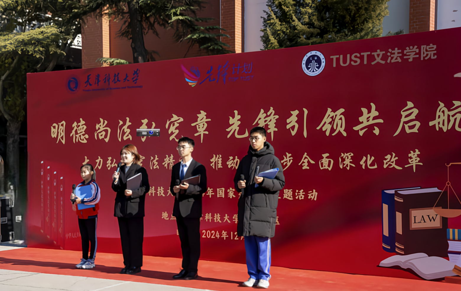 为深入学习贯彻习近平法治思想,大力弘扬宪法精神,广泛传播法治理念,12月4日,天津科技大学在河西校区举办“明德尚学弘宪法,先锋引领共启航”国家宪法日系列活动。