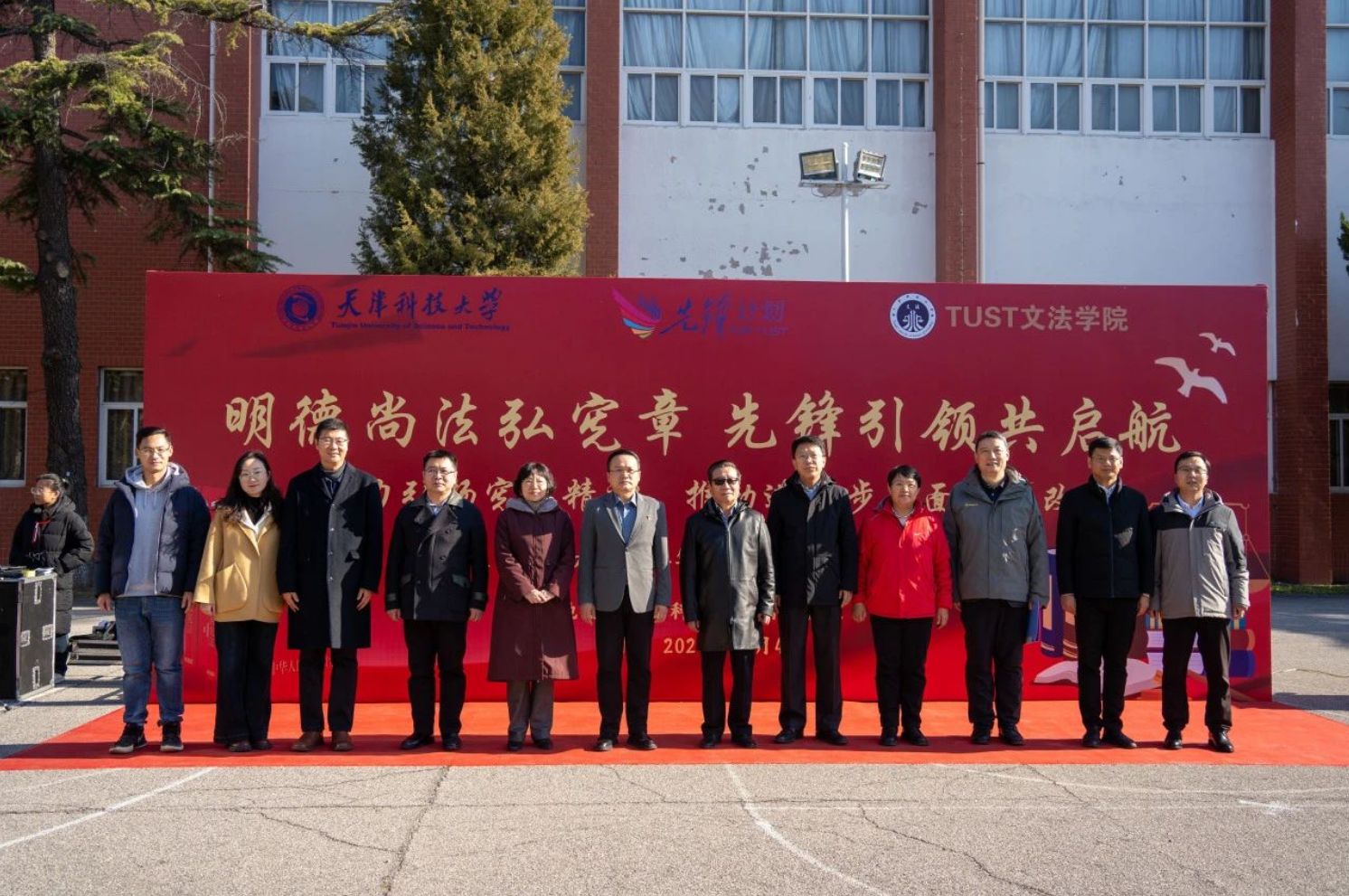 天津科技大学党委副书记安玉健、天津市第二新华中学校长廉朝、副校长李藐,天津科技大学附属柳林小学高岩老师,上海兰迪律师事务所主任、支部书记李阳,天津科技大学党委宣传部、党委学工部、团委、法律事务中心负责同志和文法学院领导班子成员及师生代表百余人参加活动。