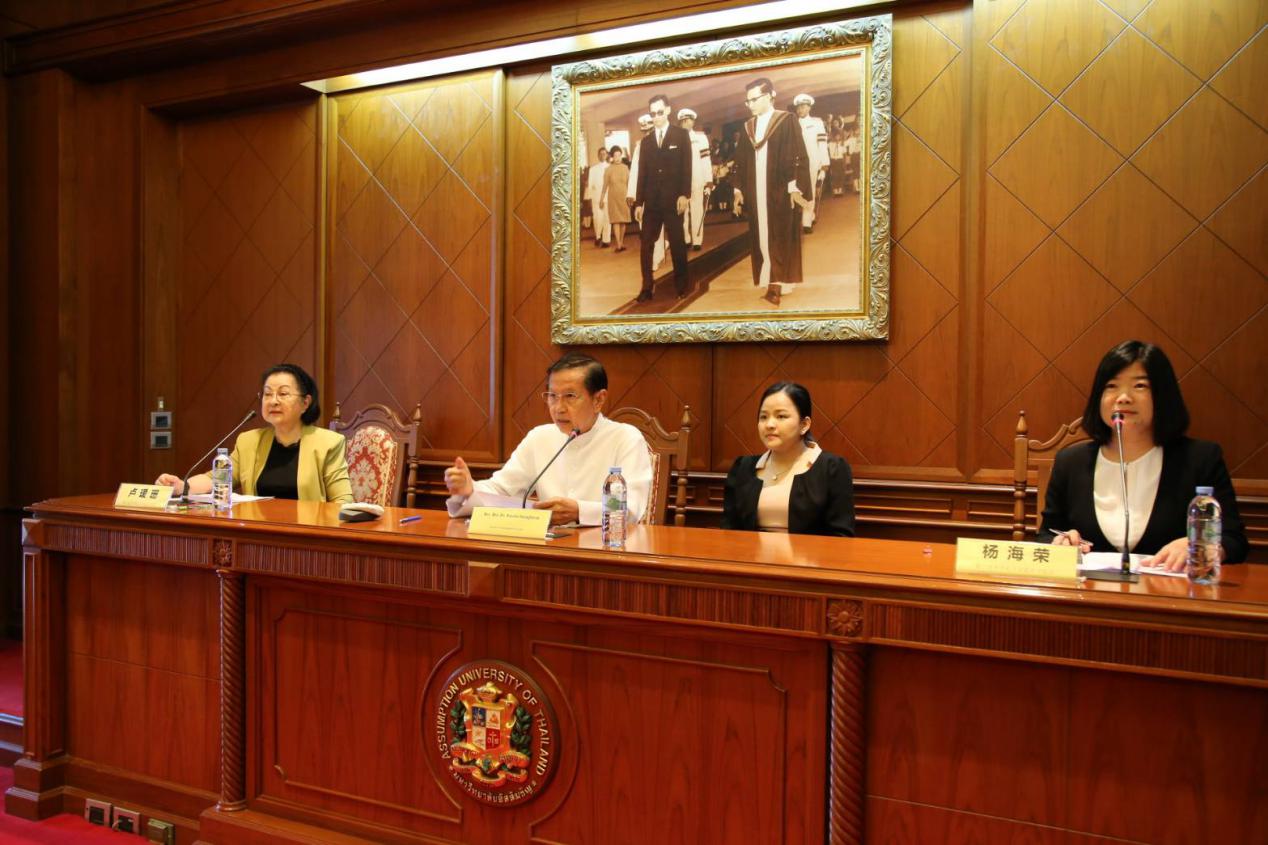 班查表示非常高兴能够通过视频会议的方式见到天津科技大学的各位朋友,2020年是一个特殊而难忘的年份,中泰两国都遭受到了新冠疫情的困扰,但两国都在疫情控制方面取得了很好的效果,希望疫情能够尽快结束,让中泰两国人民恢复正常的生活秩序。他指出,疫情期间两校守望相助、共克时艰,加深了友谊,易三仓大学孔子学院克服重重困难,创新汉语教学、中国文化交流活动等方式方法,发挥了综合文化交流平台作用。