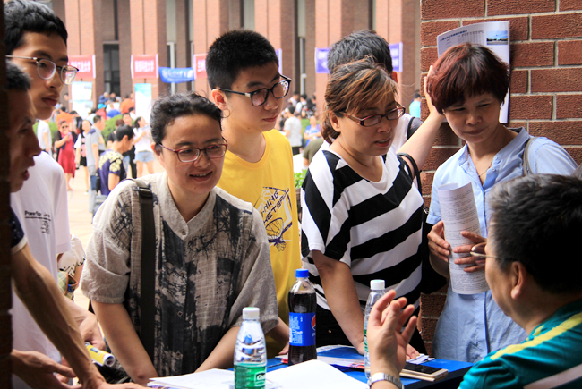 咨询现场,各个咨询点被考生和家长围得水泄不通。各个专业的专家教授、相关部门的负责老师都在咨询现场认真细致地回答每一位考生与家长的提问,对考生们关心的志愿填报方式、录取原则、人才培养特色、学科发展优势、科学研究成果、学生综合素质培养、历年录取情况、就业前景和学校学习生活环境等问题一一做出解答。开放日作为学校的一个窗口,充分展现了科大人热情、温暖、积极、向上的精神风貌。