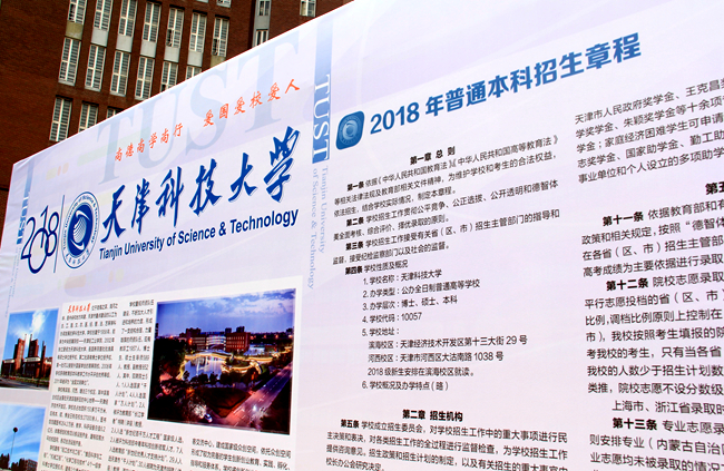 6月25日,我校在河西、滨海两校区举办2018年招生咨询校园开放日活动,来自天津及周边地区数千名考生及家长来到校园开放日现场进行咨询。应邀前来参加校园开放日活动的有天津警备区招生办、国防科技大学、陆军工程大学、陆军军事交通学院、海军工程大学、海军潜艇学院、空军工程大学、战略支援部队信息工程大学等在津招生的军事院校,以及中国药科大学、华侨大学、湖北工业大学、陕西科技大学、兰州理工大学等外省市高校。