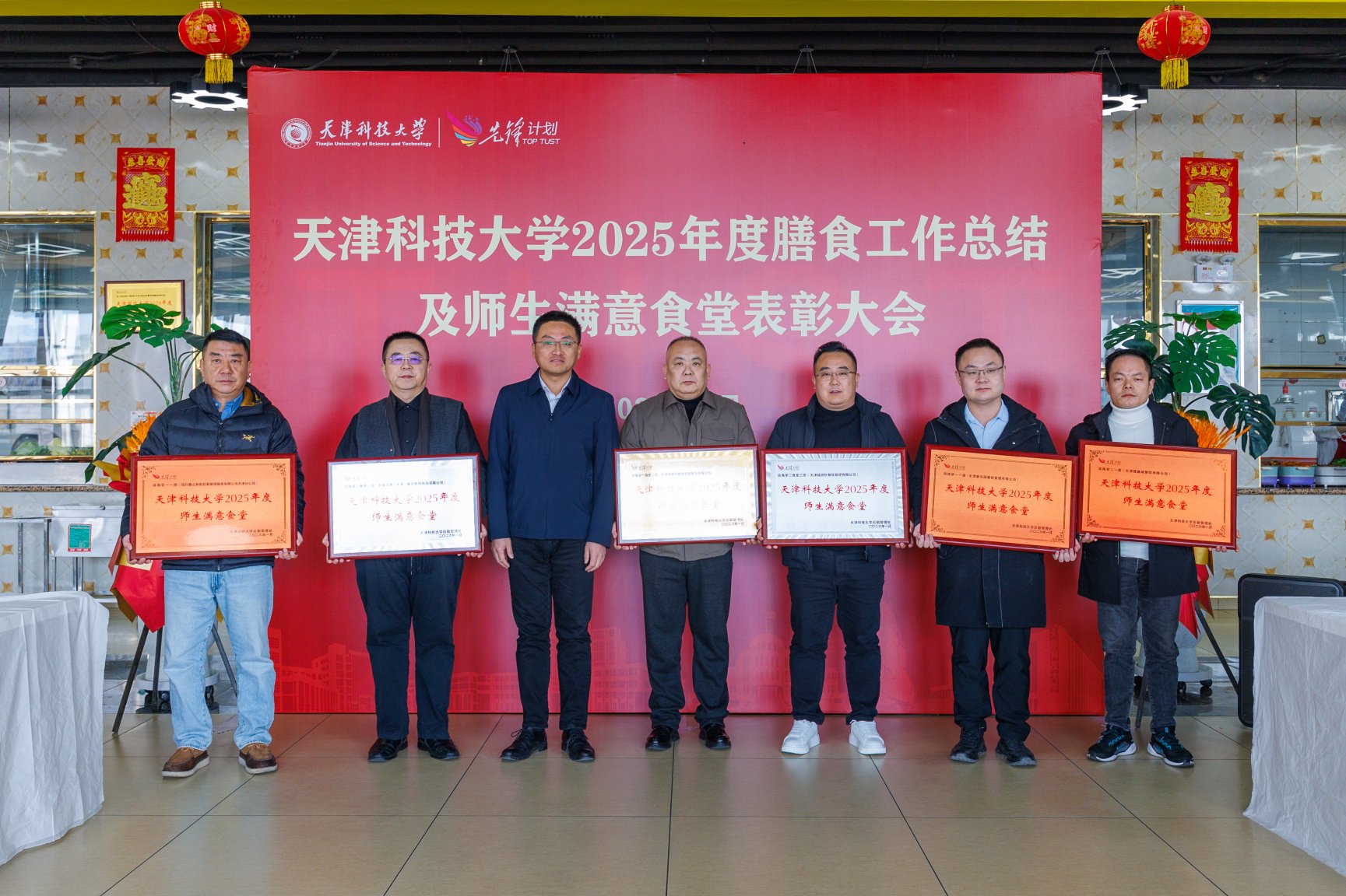 1月12日上午,天津科技大学2025年度膳食工作总结暨师生满意食堂表彰大会在滨海校区第二学生食堂举行。副校长曲志刚出席会议,后勤管理处负责同志、膳食监督评价委员会师生代表、校学生会权益部学生代表、各餐饮企业及供应商负责人齐聚一堂,共话校园膳食发展,共绘服务育人新篇。
