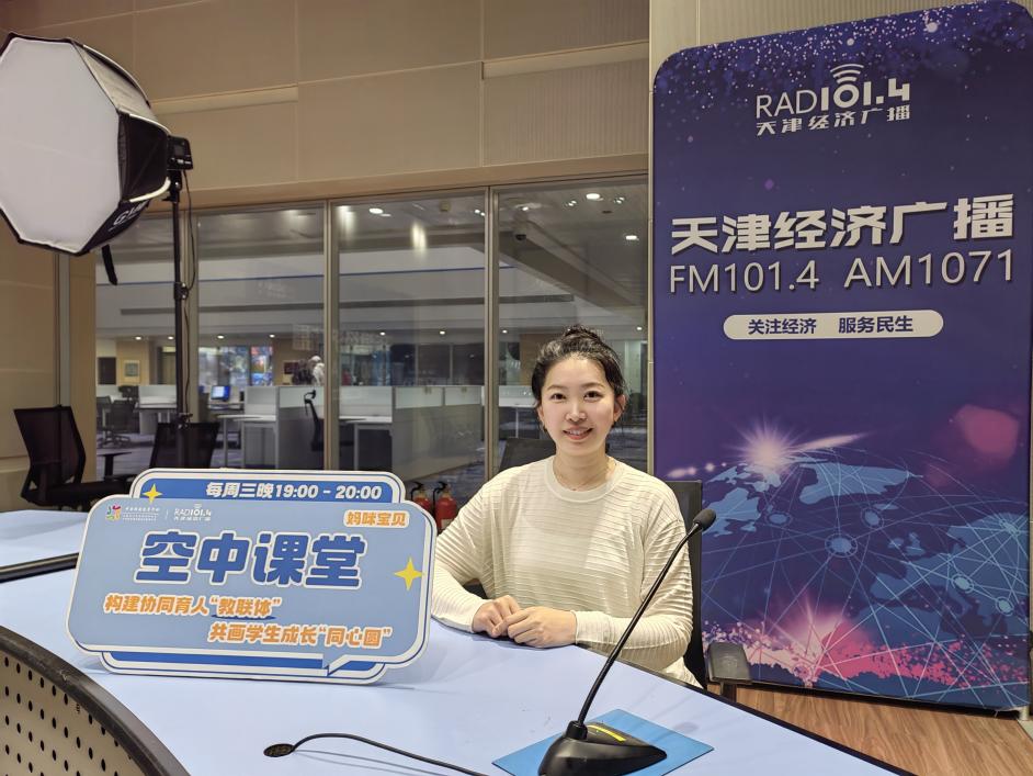 近日,天津经济广播《妈咪宝贝》空中课堂推出《从“0”到“10”的魔法,在“动”中唤醒孩子的“静实力”》专题节目,我校党委学工部副部长、大学生心理健康教育与咨询中心主任林琳,体育教学部教师谢欣受邀走进直播间,围绕青少年运动与身心发育话题,科普科学运动知识,传递体教融合、身心共育理念,收获听众广泛共鸣。