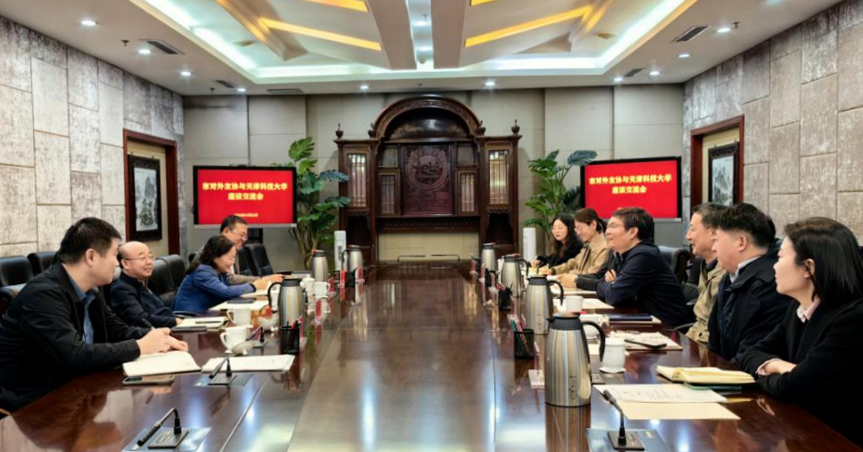 为进一步加强学校与天津市对外友好协会的合作交流,促进资源共享,近日,天津科技大学党委副书记贾启君带队赴天津市对外友好协会走访调研。市外办党组书记、主任、对外友协副会长栾建章,市外办党组成员、对外友协副会长黄春艳,秘书长董英明、联络处处长李文家热情会见了贾启君一行。我校国际交流处、市友协科大理事代表和外国语学院负责同志参加调研。