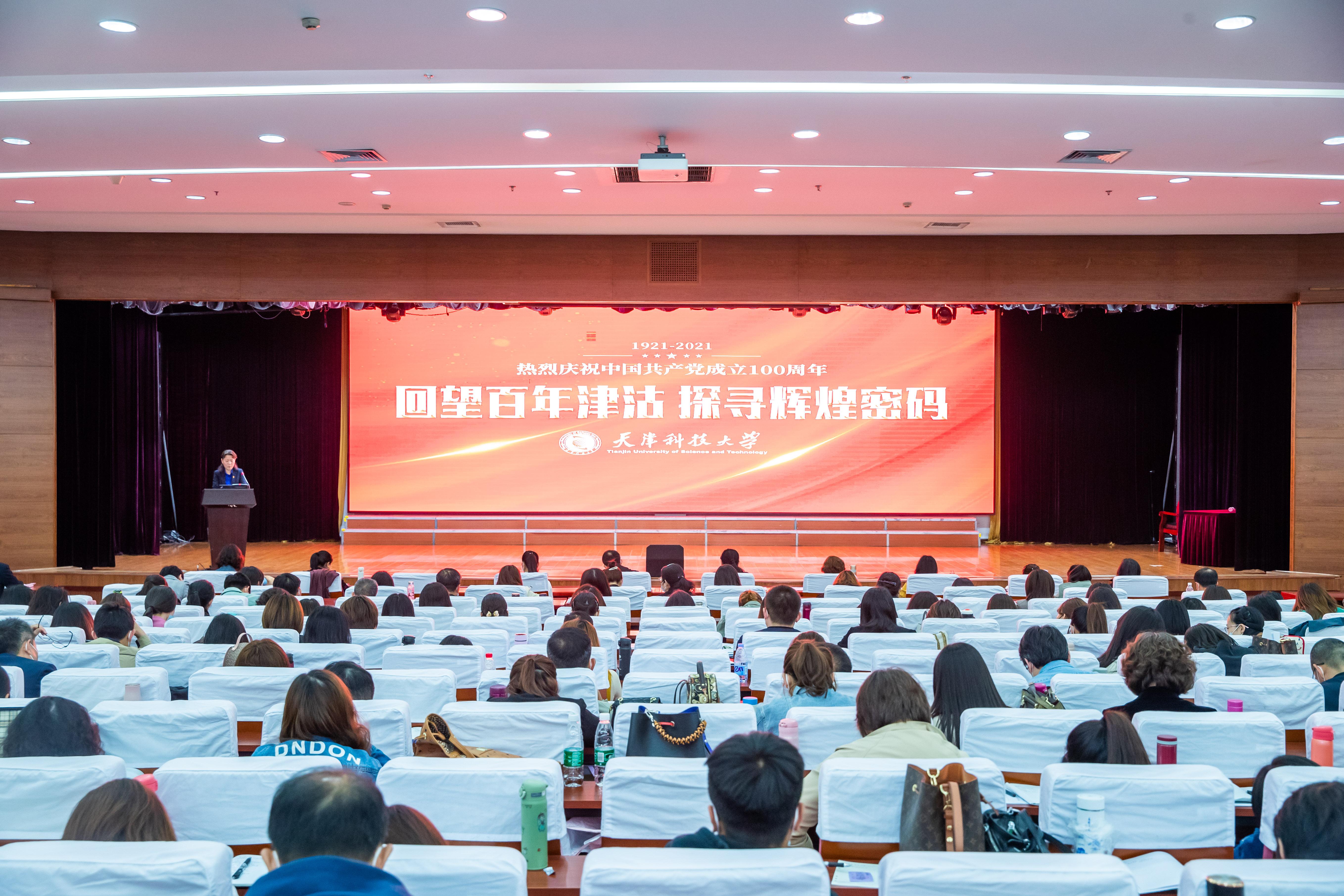 为贯彻落实习近平新时代中国特色社会主义思想,喜迎建党100周年,根据市教育两委《关于开展“百年行动”思想政治理论课特色案例和品牌课程征集展示活动的通知》要求,2021年4月28日上午,我校精心打造的“百年辉煌”思政品牌课程《回望百年津沽探寻辉煌密码》在天津全行滨海会议中心开讲。校党委副书记冯翠玲担任主讲人,全国防汛抗旱先进个人隆永法、全国最美乡村教师刘月升、周邓纪念馆讲解员马艳等作为特邀嘉宾进行助讲。滨海新区教体系统基层党务干部、心理教师,我校马克思主义学院教师、青马班学员500余人聆听课程。