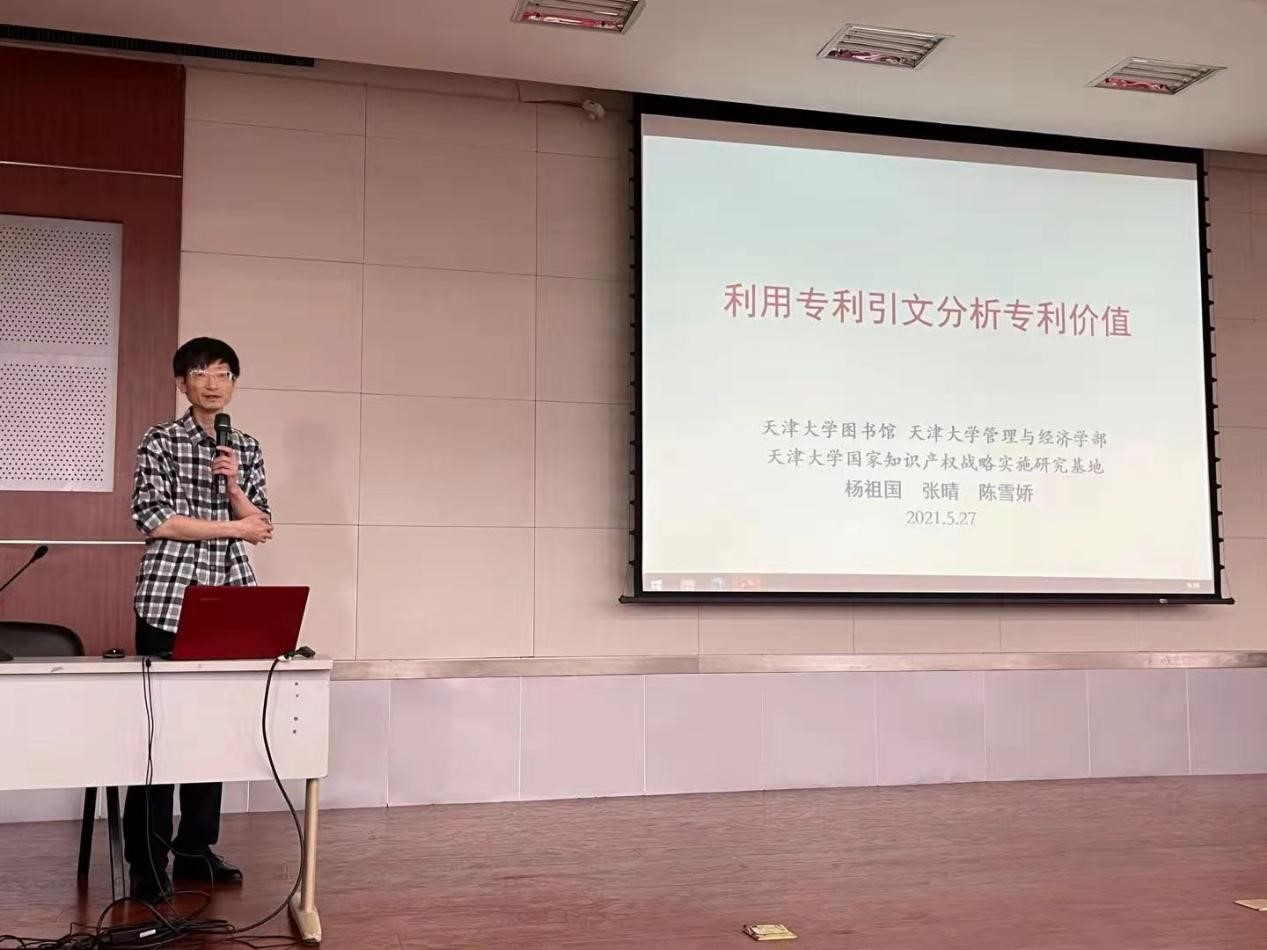 在学术报告阶段,来自北京瑞盛铭杰知识产权代理事务所、天津大学、北京合智同创知识产权代理有限公司合伙人王栓庆、智慧芽公司以及我校图书馆的专家学者先后就专利侵权看高质量知识产权保护、利用专利引文分析专利价值、国外专利申请途径与策略、高价值专利案例分析、专利分析促进高校专利质量提升、高价值专利布局等主题分别作了报告。