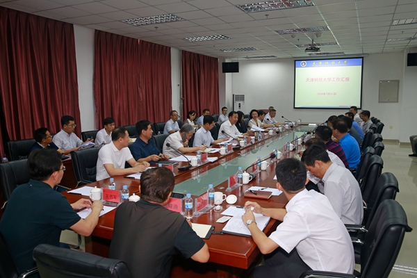 杨茂荣一行在逸夫楼三楼会议室主持召开座谈会。在听取了学校工作汇报后,杨茂荣表示,近年来,科技大学在人才培养、学科建设、科学研究等方面取得了累累硕果,为滨海新区发展作出了贡献。他代表滨海新区向科大多年来的工作表示感谢,对即将迎来的60周年校庆表示祝贺。他指出,滨海新区是天津工业发展的摇篮,也与科大有着千丝万缕的渊源。新形势下,滨海新区正朝着建设繁荣、宜居、智慧新城的目标奋进,新区政府要为科大发展做好服务,力所能及为科大发展创造条件。在区校合作共建的新里程碑、新起点下,希望科大能进一步与滨海新区加强沟通联系,充分发挥学科、人才和科技优势,深化与新区的务实合作。
