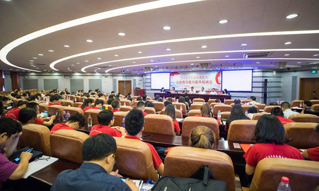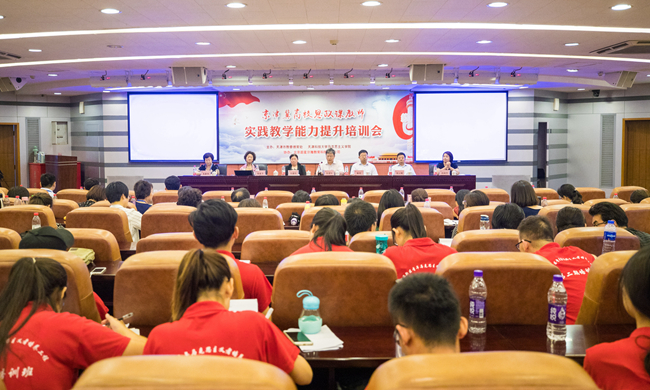 在伟大的中国共产党成立97周年前夕,6月30日,我校河西校区主楼C区报告厅座无虚席,来自北京科技大学、河北大学、海南大学以及京津冀高校的百余名思政课专家、教师齐聚一堂,就“思政课教师实践教学能力提升”的议题进行了深入的研讨。本次培训会由天津市教委德育处、我校马克思主义学院和天津市高校思政课“教学改革创新示范团队项目”徐越如团队主办,旨在进一步贯彻落实全国高校思政会议精神,贯彻落实市委关于高校思政改革攻坚的实施意见,完善高校思政课实践教学体系,提高思政课实践教学的实效性和大学生在思政课实践教学中的获得感。