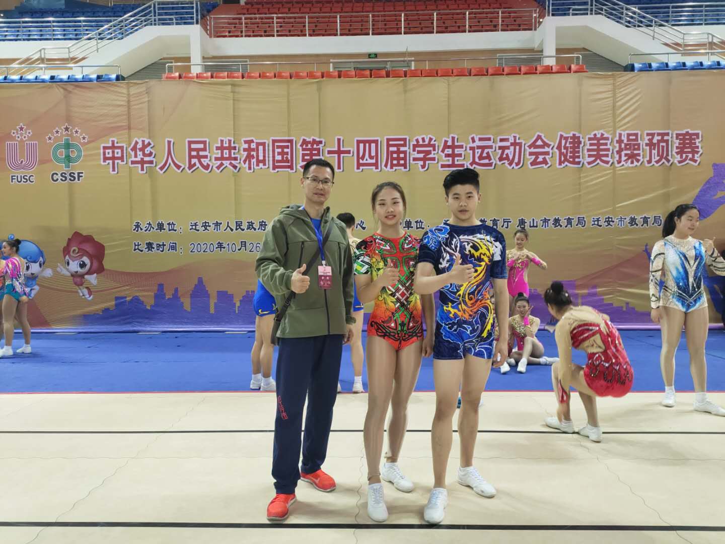 天津市大学生代表队由天津工业大学和天津科技大学两所高校联合组建,在比赛中,天津市大学生代表队,勇于拼搏,不畏强手最终获得五个参赛项目中4个项目的决赛资格,其中我校两名运动员参加此次比赛获得五人操第二名、混双第四名、三人操第五名。明年决赛将在青岛举行,天津市健美操代表队将继续发扬刻苦训练,团结拼搏的精神,努力在决赛中为我校取得更优异的成绩。