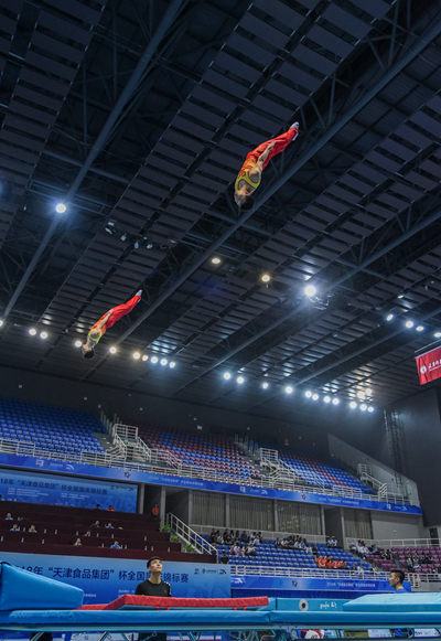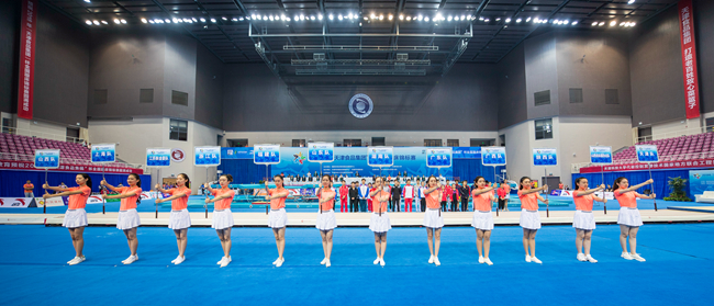 全国体育总局体操运动管理中心副主任郭振明宣布开赛。2018年“天津食品集团”杯蹦床锦标赛正式拉开序幕。