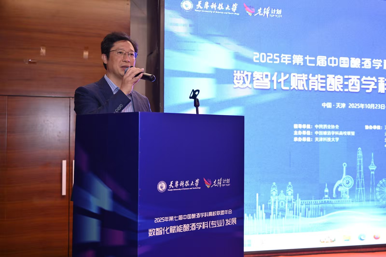 近日,第七届中国酿酒学科高校联盟年会在天津顺利召开。本届年会由中国酒业协会指导,中国酿酒学科高校联盟主办,天津科技大学承办,天津市酿酒工业协会、天津衛酒集团芦台春、天津津酒集团有限公司、中法合营王朝葡萄酿酒有限公司共同协办。会议以“数智化赋能酿酒学科(专业)发展”为主题,吸引了江南大学、四川大学、西北农林科技大学、南昌大学、华中农业大学、贵州大学、山东农业大学、湖南农业大学、陕西科技大学、北京工商大学、齐鲁工业大学、湖北工业大学、吉林农业大学、贵州理工学院、北京农学院、茅台学院、宜宾学院、泸州职业技术学院、天津现代职业技术学院等20多所高校,以及全国酿酒学科领域的近百名专家学者、行业领袖及师生代表齐聚津门,共商学科发展大计,共绘产业创新蓝图。