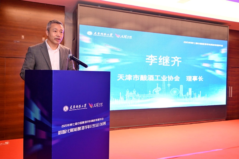 天津市酿酒工业协会理事长李继齐在致辞中,以芦台春集团为例,介绍了企业在低度酒“无水降度”、风味物质解析等领域的科研突破。他强调,数智化并非取代传统技艺,而是为传统酿造插上科技的翅膀。未来,行业将携手高校与科研机构,推动酿酒科学与信息、数据、智能等学科交叉融合,共同构建酿酒学科数智新生态,实现“经验”与“数据”的协同、“艺术”与“科学”的共鸣。