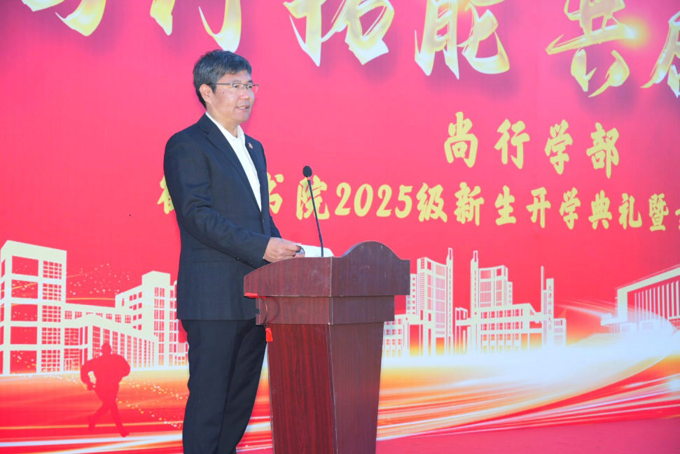 2025级陈鹤鸣作为新生代表发言,承诺在这片名为“鹤鸣”的沃土上,深植“尚学”之根,淬炼“尚行”之翼,锤炼专业硬实力,培养跨界创新思维,不负初心,不负时代。