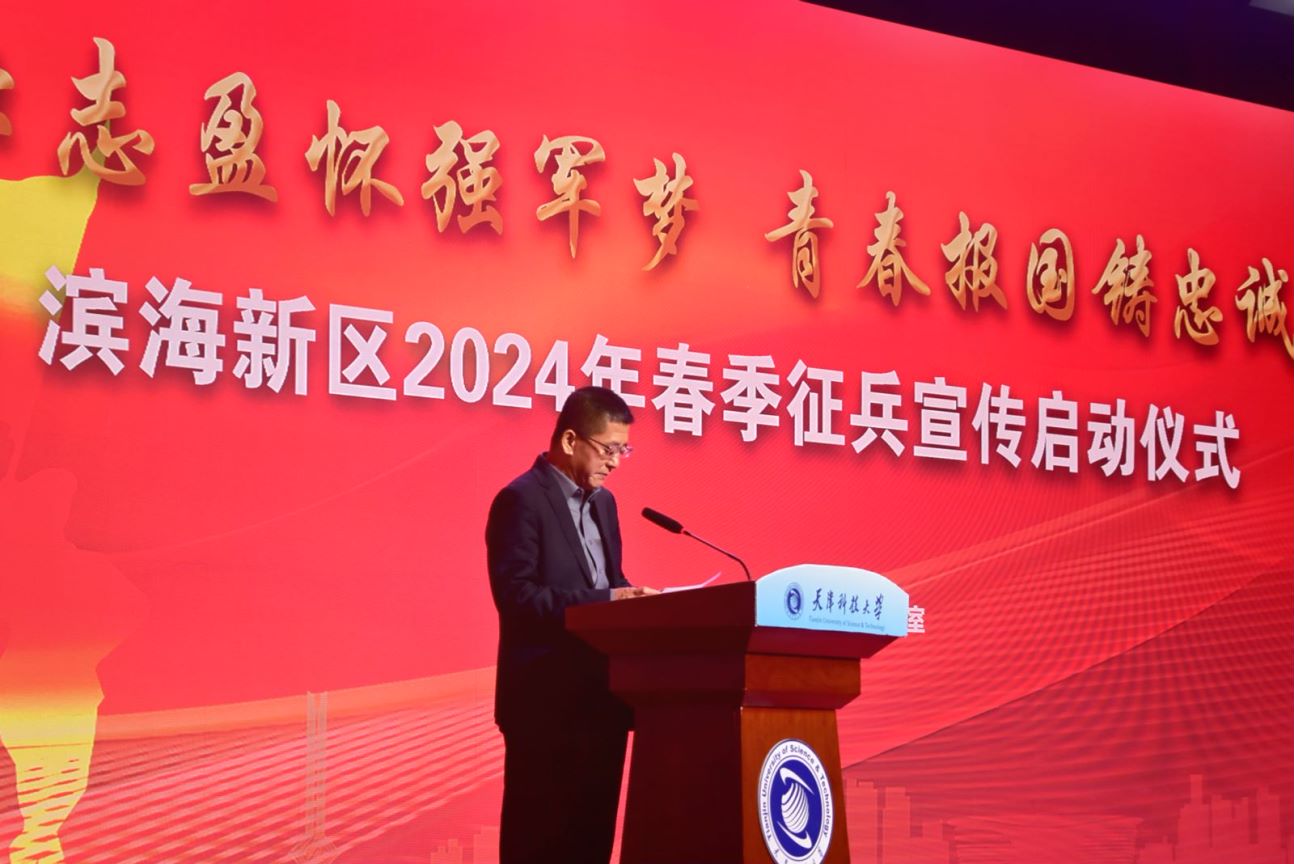 会上,韩金玉致辞。他表示,做好大学生征兵工作,是党和国家赋予高校的政治责任和历史使命,是高校落实立德树人根本任务的重要途径。滨海新区征兵宣传活动的开展,同时也拉开了天津科技大学2024年征兵工作正式启动的序幕。学校党委将动员广大青年学生,积极践行习近平总书记的谆谆嘱托,把个人理想同祖国需要、社会发展紧紧结合在一起,携笔从戎,投身国防。