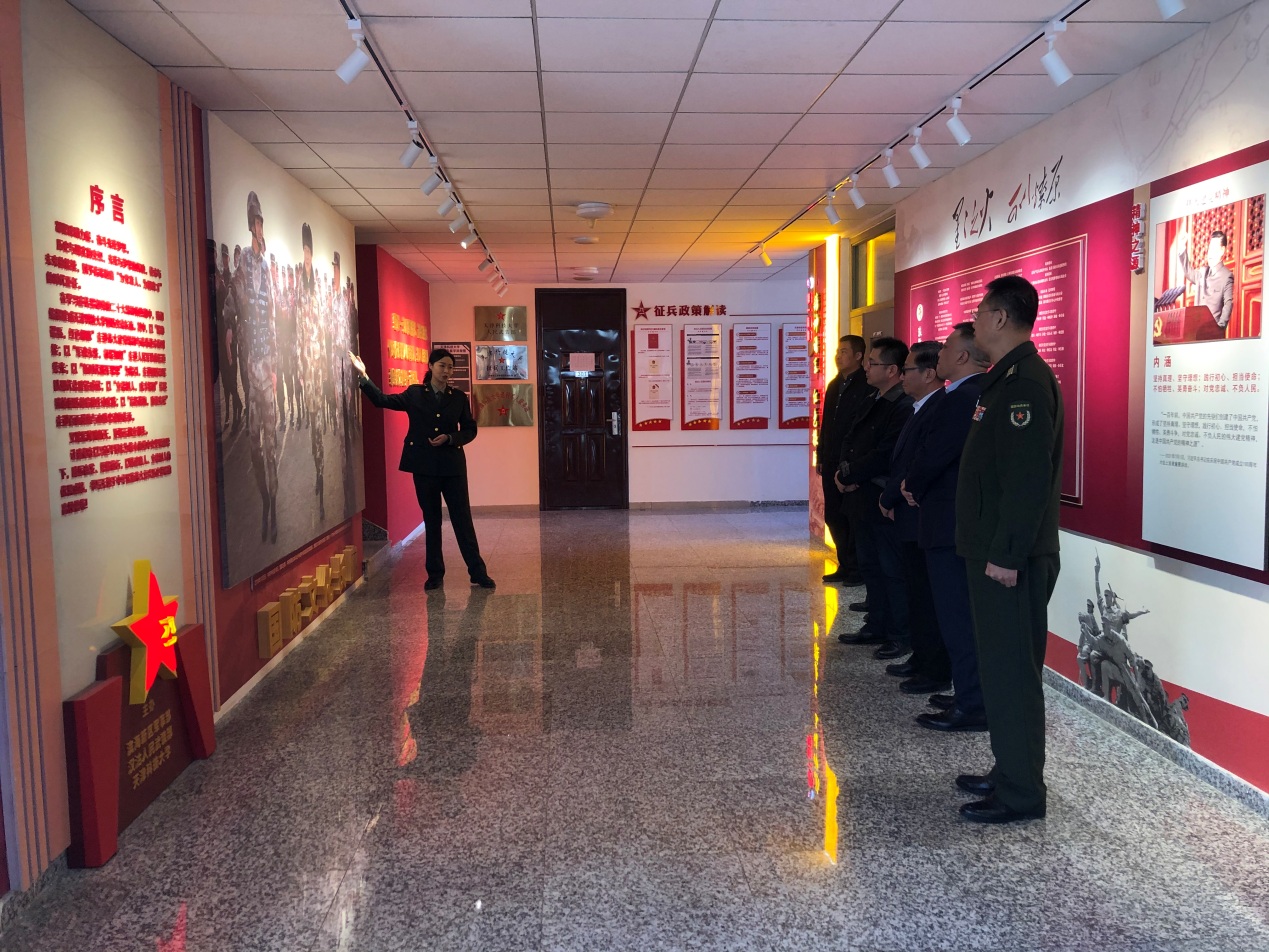 会后,全体与会领导一同前往图书馆参观国防文化长廊,并视察征兵政策进校园活动的开展情况。