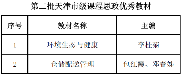 近日,天津市教委发布第二批天津市级课程思政示范课程、课程思政优秀教材和首批课程思政优秀案例(本科)评选结果。我校获天津市级课程思政示范课程5门,课程思政优秀教材2本,课程思政优秀教学案例2项。