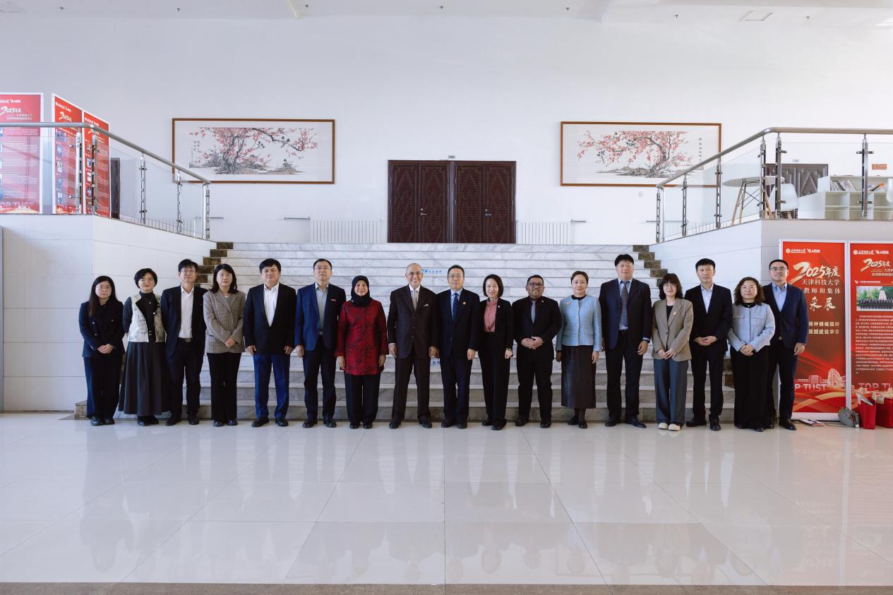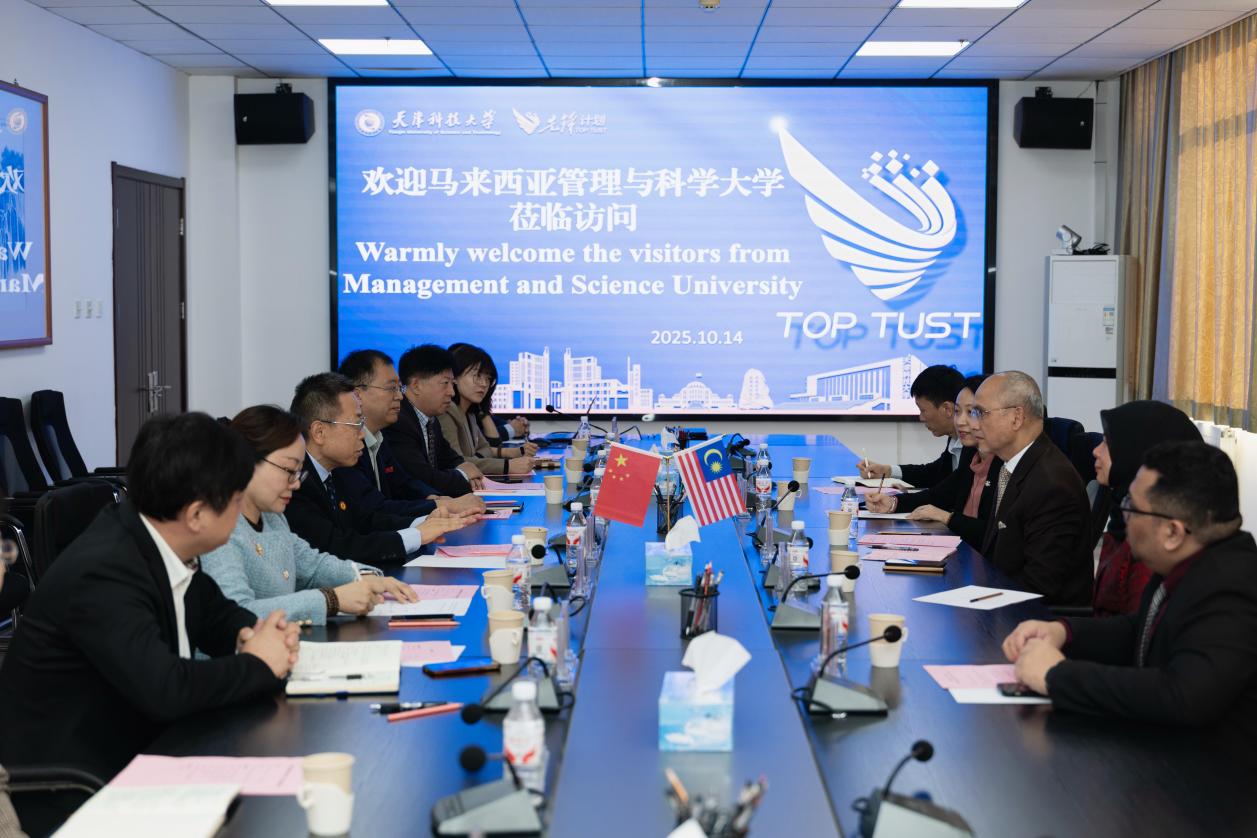 10月14日,马来西亚管理与科学大学校长丹斯里·舒克瑞、高级副校长拿督·莎丽法·胡达·恩古·慕达等一行5人到访天津科技大学。校党委副书记、校长路福平会见代表团,国际交流处、人工智能学院、艺术设计学院负责同志陪同会见。
