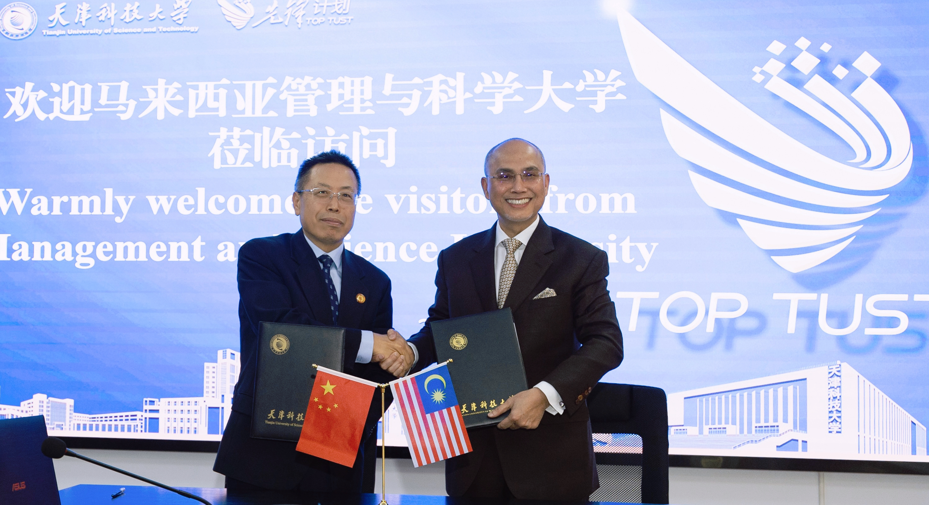 丹斯里·舒克瑞对天津科技大学的热情接待表示衷心感谢,介绍了马来西亚管理与科学大学的整体情况。他表示,中国是马来西亚最重要的贸易伙伴之一,越来越多的中国学生赴马留学,两国在教育领域的合作持续深入,希望两校在师生交流、科研合作和学术交流等多领域开展务实合作。