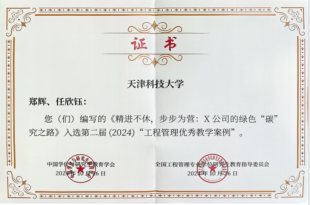 近日,教育部学位与研究生教育发展中心公布了专业学位主题案例项目成果结项评审结果,我校李海岩、纪向宏、毛文娟等三位教授主持的主题案例建设项目顺利完成结项,其中5篇主题案例成果入选中国专业学位案例中心案例库,至此我校入库案例增至13篇。此外,在全国工程管理专业学位研究生教育指导委员会主办的第二届“工程管理优秀案例”评选中,我校郑辉教授主持的案例《精进不休,步步为营:X公司的绿色“碳”究之路》获评优秀案例,这是我校首次在全国工程管理专业学位类别中获奖。