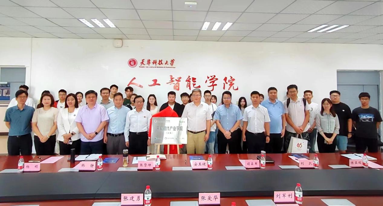 9月23日上午,天津科技大学与天津市大学软件学院共建天软现代产业学院(滨海)揭牌仪式在我校人工智能学院举行。天津市大学软件学院党委书记张爱华,天津科技大学党委副书记安玉健出席揭牌仪式。天津市大学软件学院副院长张建勇、学生工作部部长刘军利,我校校长办公室相关负责人、人工智能学院领导及教师代表、参加我校65周年校庆纪念活动的校友代表参加会议。会议由人工智能学院副院长张贤坤主持。