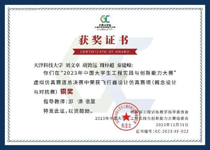 附:2023年中国大学生工程实践与创新能力大赛获奖证书