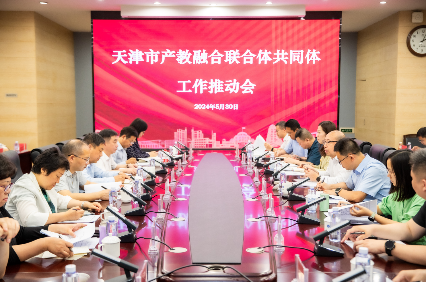 在习近平总书记发表“5·29”重要讲话一周年之际,5月30日,天津市产教融合联合体共同体工作推动会在天津科技大学召开。会议旨在学习贯彻习近平总书记视察天津重要讲话精神,坚持教育科技人才一体化发展,深化职普融通、产教融合、科教融汇,助力发展新质生产力,推动构建“一体两翼”现代职业教育新格局,在教育强国建设中开创天津职业教育高质量发展新局面。市委教育工委委员、市教委副主任罗延安出席并主持会议。