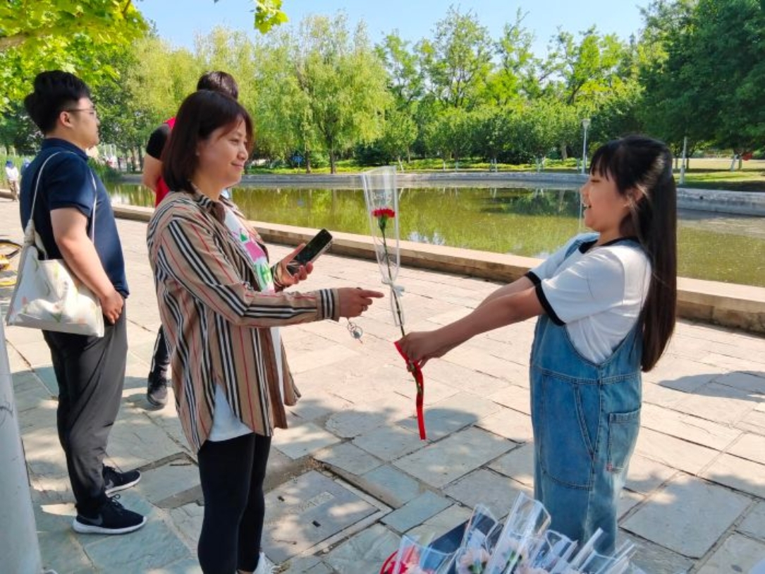 5月14日,津滨海报道滨海爱心义聚汇联合天津科技大学海洋与环境学院志愿者协会开展主题公益活动,用奔跑的方式,表达对母亲的爱。活动中,志愿者们围绕泰丰公园慢跑5.2公里,并将对母亲的祝福写在许愿树上。当天滨海爱心义聚汇还为每位参与活动的志愿者准备了康乃馨,帮助大家录制祝福视频,一同献给母亲。新颖的活动形式也吸引了不少市民参与,志愿者们也将康乃馨送到他们手上,鼓励他们大声说出对母亲的爱。