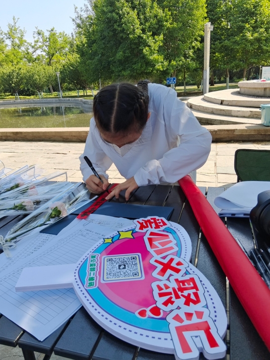 活动中,志愿者们围绕泰丰公园慢跑5.2公里,并将对母亲的祝福写在许愿树上。当天滨海爱心义聚汇还为每位参与活动的志愿者准备了康乃馨,帮助大家录制祝福视频,一同献给母亲。新颖的活动形式也吸引了不少市民参与,志愿者们也将康乃馨送到他们手上,鼓励他们大声说出对母亲的爱。