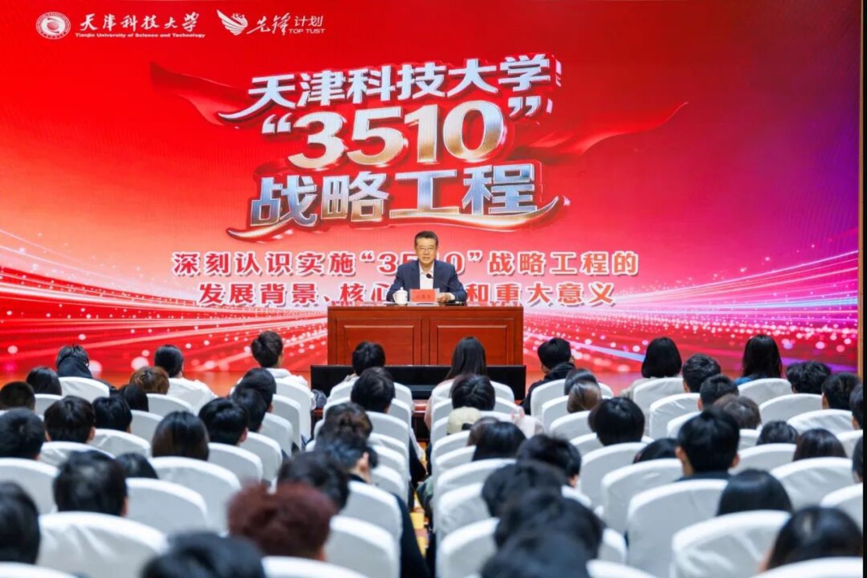 为认真落实立德树人根本任务,引导青年学子把握时代发展大势,坚定理想信念,实干担当作为,4月2日下午,在滨海校区逸夫楼报告厅,校党委书记白海力以“全面实施学校‘3510’战略工程和深入推进‘先锋计划’”为切入点,以《锚定目标 奋楫争先 为全面建设高水平研究型大学贡献青春力量》为题,带领师生同上形势与政策教育“开学第一课”,同答“全面建设多科性特色化高水平研究型大学这一课题”,师生代表240余人参加了报告会。党委宣传部负责同志主持会议。