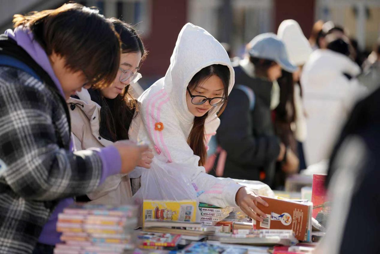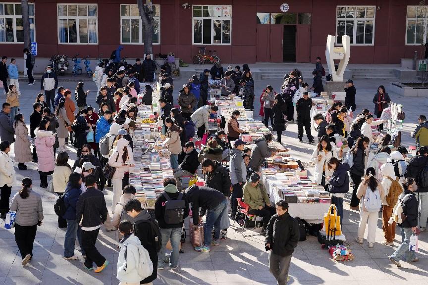 作为活动核心载体,海河旧书市集暖冬专场在天津科技大学图书馆前广场热力开市,30余家参展书店携千余种特色图书与文创亮相,名家签名本、民国新文学著作、古籍善本等兼具文化价值与收藏意义的书籍琳琅满目,定制文具、非遗手作等文创产品同步展销,全方位满足师生多元阅读需求与文化体验。市集现场人头攒动,沉浸式体验让“以文启智、以文润心”的先锋文化理念落地生根。