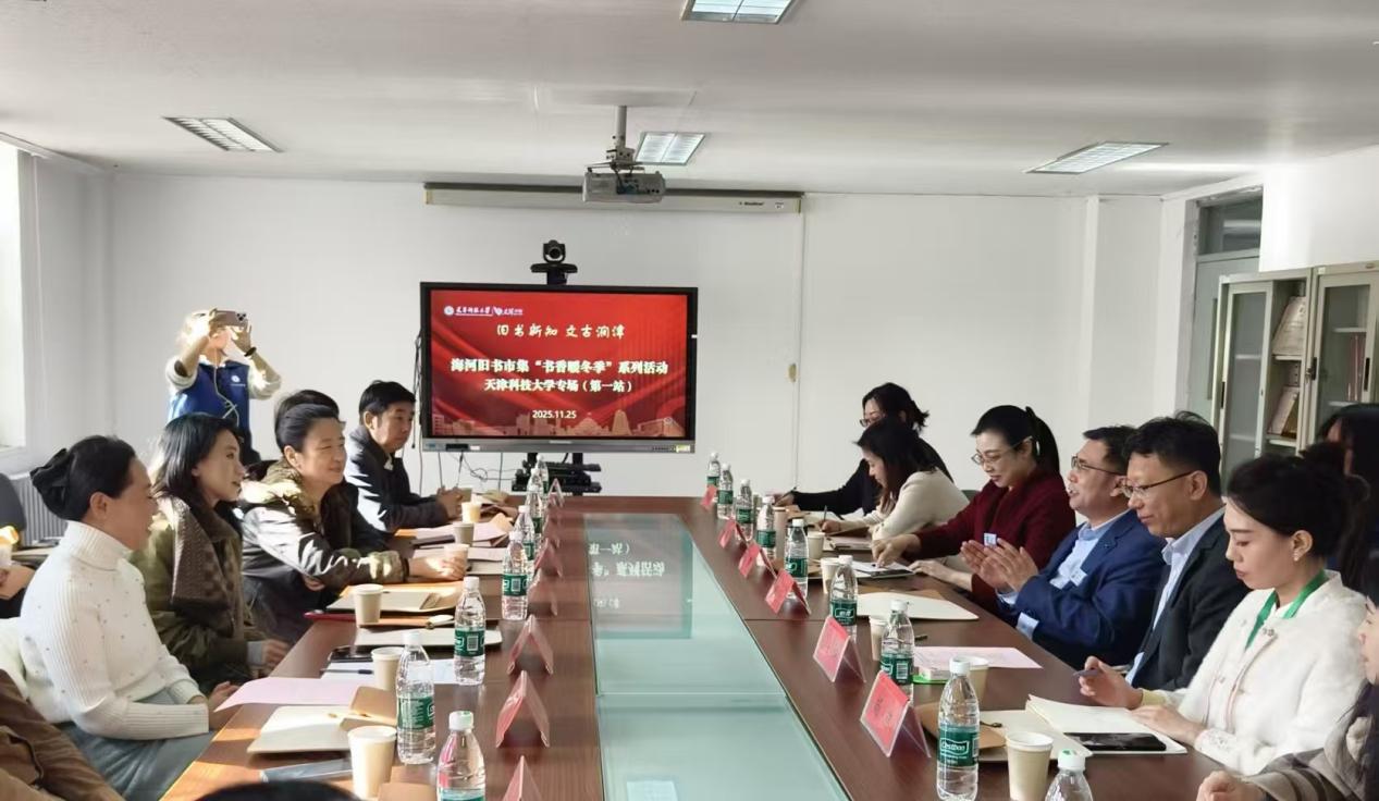 11月25日,2025年天津市“悦读之星”演讲比赛优秀选手交流活动暨海河旧书市集“暖冬书香季”进校园活动在我校落幕。活动由中共天津市委宣传部指导,中共河东区委宣传部、天津师范大学主办,我校图书馆承办。活动当天,天津市市委宣传部印发处、河东区委宣传部相关负责同志出席活动,天津科技大学、天津师范大学、天津农学院等5所高校师生代表及30余家参展书店参加。