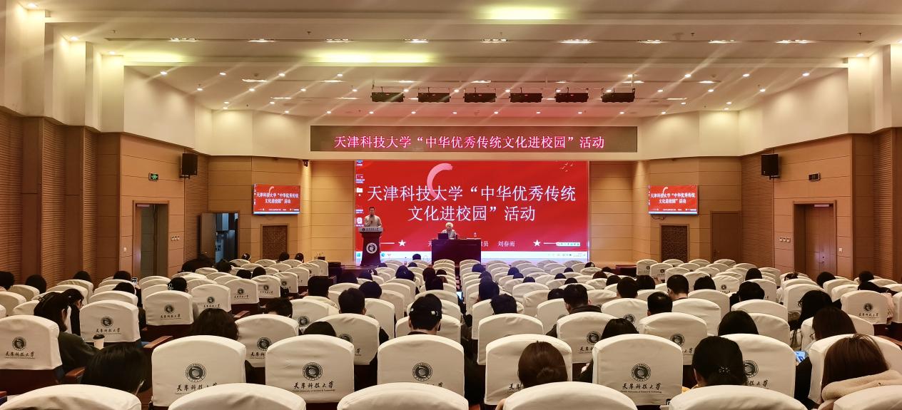 11月21日,由天津科技大学主办、外国语学院承办的“中华优秀传统文化进校园”专题讲座活动在我校逸夫楼报告厅举行。中国书法家协会会员、天津市文史研究馆馆员、天津市艺术学会副会长刘春雨担任主讲,全校各学院学生代表150余人参加活动。