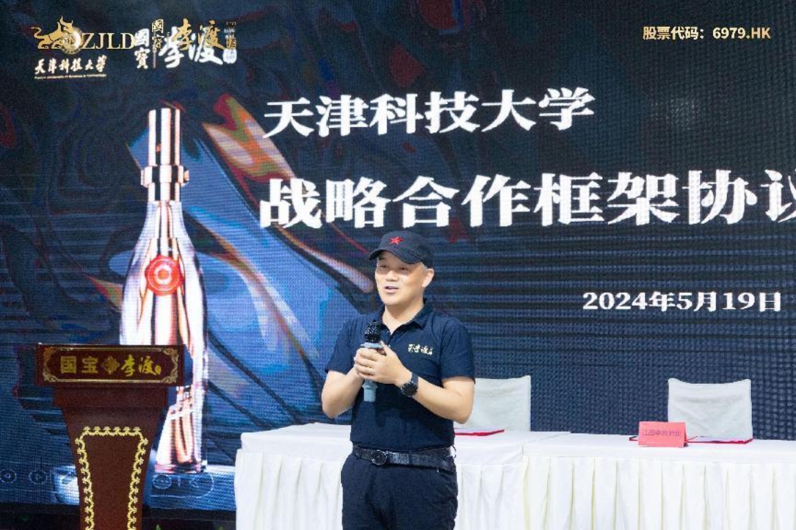 汤向阳热烈欢迎天津科技大学领导及专家一行到访国宝李渡酒业有限公司调研、指导。在致辞中他指出,双方合作具有一定历史背景,学校早期编著的关于酿酒教材为自己和公司的发展奠定了基础,表示感激。双方此次合作,主要是如何通过更为科学的手段将国宝李渡800年元代古窖池中的微生物进行分离、复壮、扩培,为消费者呈现更高品质的酒。这次合作将为“产教融合”树立一个新的标杆,除了科研及教育合作外,公司还将启动组建“中国白酒古窖遗址和文化遗产委员会”,希望学校参与共建。