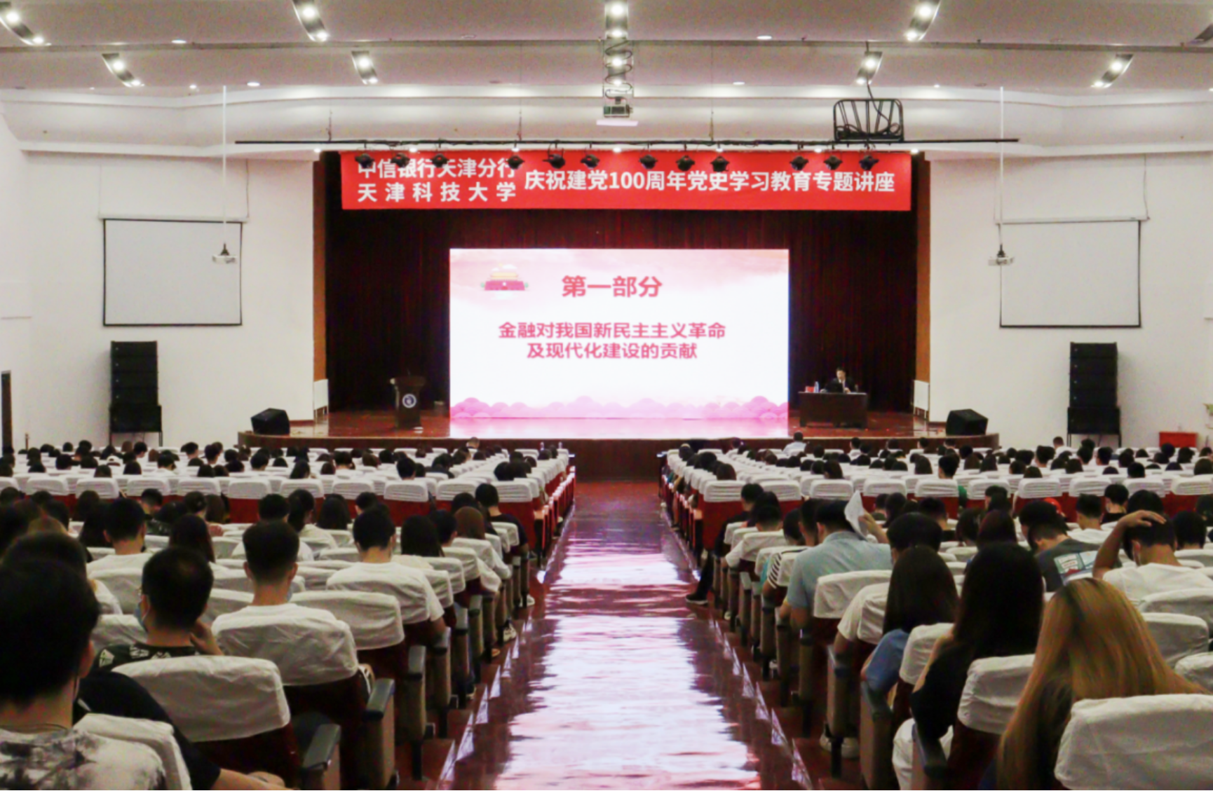 仪式后,石嘉行长在言泉楼千人礼堂启动党史学习教育党课活动,并以“学党史,悟思想,传承红色基因;办实事,开新局,践行国企担当”为题,以中国共产党领导的中国发展史为主线,以现代金融发展和中信红色基因、中信发展史为指引,为在场400余位师生带来了一堂生动而又有意义的党课。