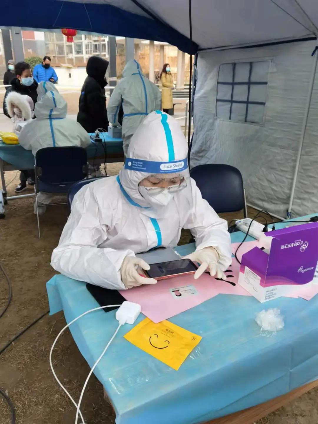 “冲在一线,义不容辞!”人工智能学院系主任、滨海新区政协委员、民盟科大委员会副主委刘颖及时到红桥区泉春里社区报到,参加核酸检测信息录入培训及准备工作。15日早上5点,她身着防护服担任核酸检测登记员。登记员的危险系数较高,防护标准和核酸检测人员是一样的,还要应对因室外温度低防护面罩起雾,导致视线模糊的不利情况,因此信息录入过程高度紧张,但她全心投入,工作愈发熟练,受到社区居民广泛称赞。
