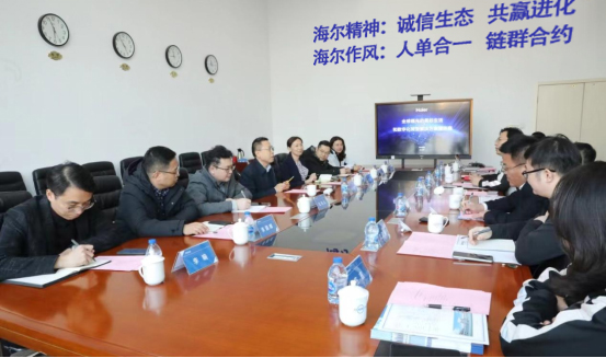 海尔集团天津洗衣机互联工厂总经理郝兴军对学校来访表示热烈欢迎,并就企业发展状况、技术创新成果作了详细介绍,希望学校能够为企业发展提供更多人才支持,共同提升“产学研”合作水平。海尔集团天津大区政企合作秘书长梁正城对海尔集团的全生态板块布局进行讲解,着重阐述了企业在工业互联网和智能家居领域的领先优势。