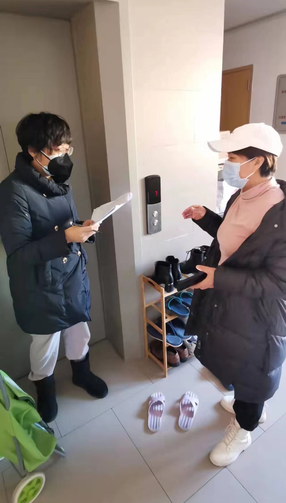 滨海学习支持中心党支部崔永梅9日上午第一时间响应所在社区的号召,报名担任志愿者工作,负责24户居民的前期信息登记和摸底排查工作,挨家挨户张贴微信群相关信息,并在微信群内为群众答疑。10日7点正式开始大筛工作,她负责两栋楼40户的核酸登记信息采集工作,逐户敲门统计家中人口情况并完成核酸登记。同时按照社区安排的检测顺序,引导楼群居民有序下楼进行检测,用最短的时间完成了核酸检测工作,大大减少居民在寒风中等待的时间。