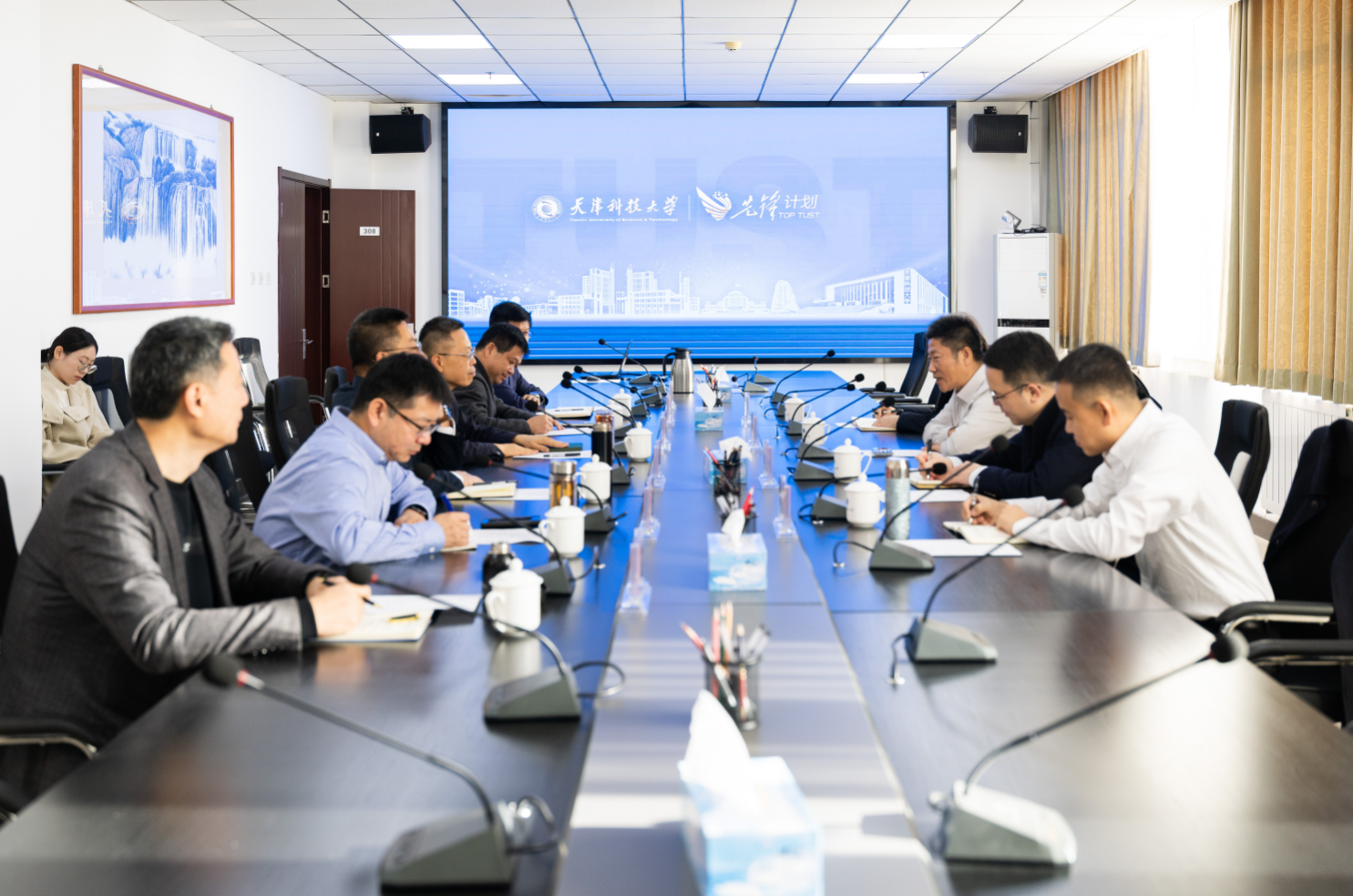 11月25日,滨海新区人民检察院一行到访天津科技大学,双方围绕进一步加强沟通协作,共促法治建设与高等教育深度融合开展了交流。天津科技大学党委副书记、校长路福平,副校长曲志刚,滨海新区人民检察院党组书记、检察长张云琦,党组副书记、副检察长曹纪元,副检察长张莉艳,党组成员、副检察长李杨出席会议,学校有关部门负责同志参加座谈。
